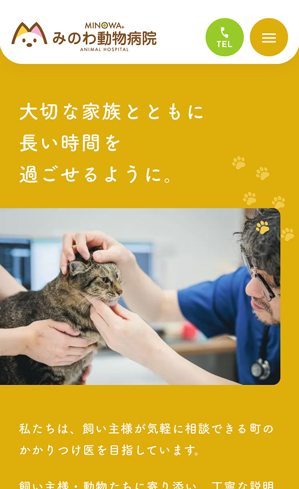 岐阜県岐阜市で犬・猫の診療を行うみのわ動物病院です。眼科や歯科、循環器科、皮膚科、呼吸器科などを設けて幅広い部位の診療に対応しています。また、混合ワクチンの接種やフィラリア症、狂犬病の予防など予防医療も行っています。